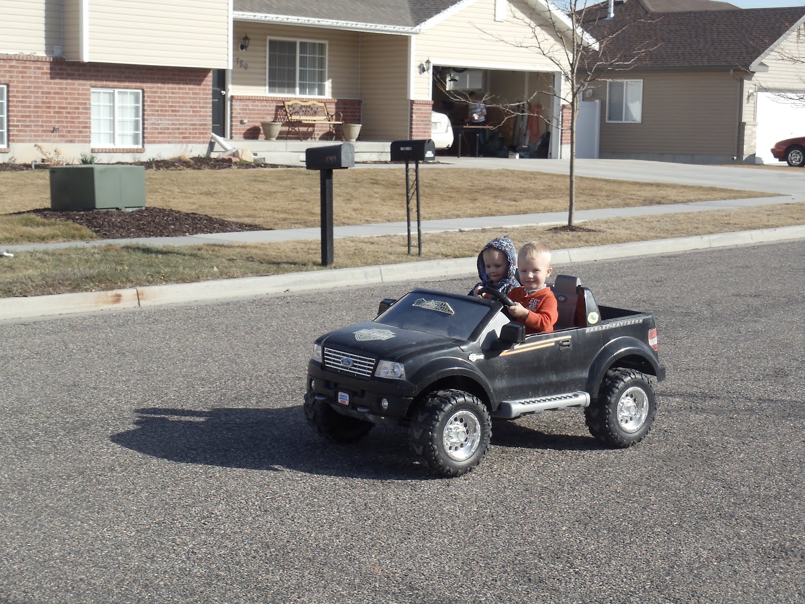 On a LOVELY and WARM evening, most of the neighbors were out playing in the streets! Tate was lucky to ride this little number (the neighbors) around for most of the evening!